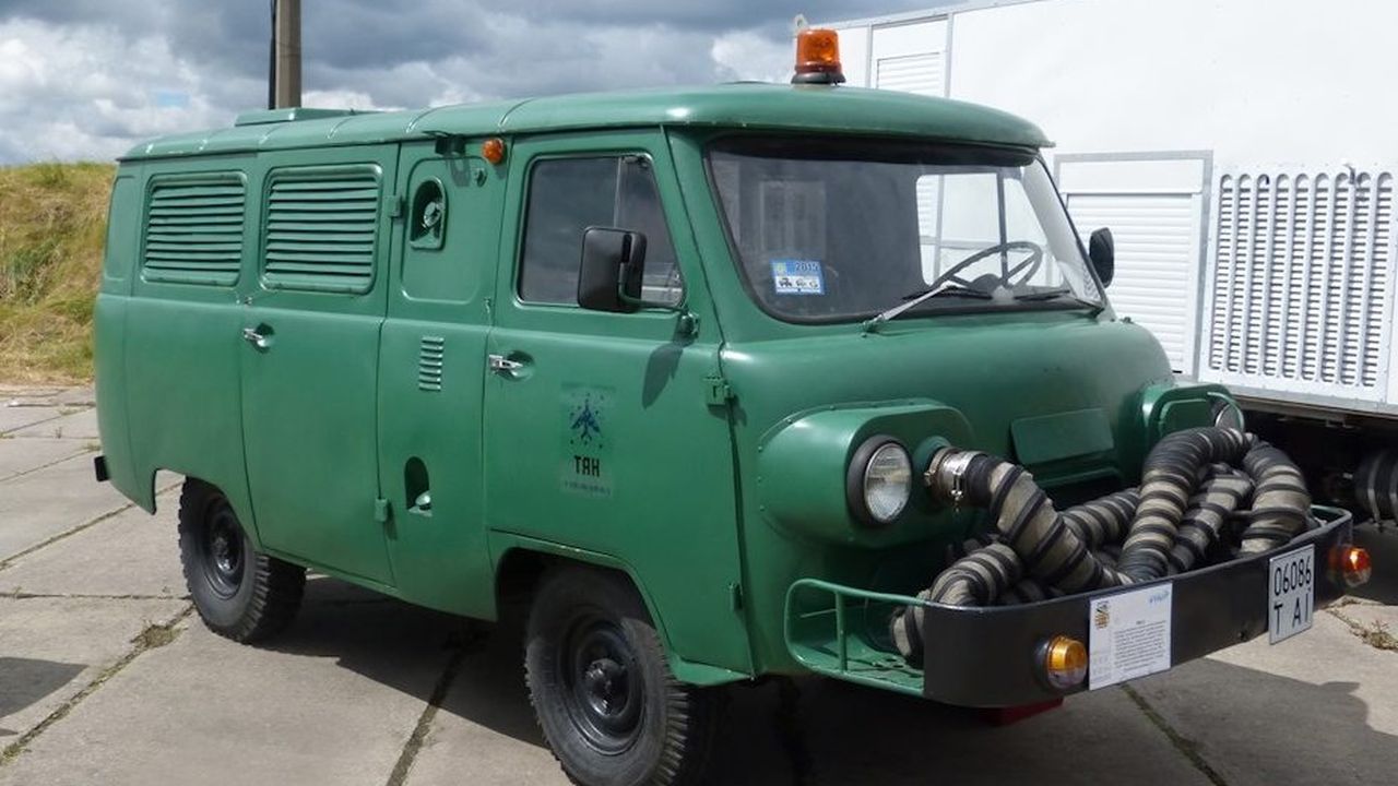 Как сообщают «Автоновости дня» со ссылкой на пресс-службу Ульяновского автозавода, внешне авиационные «Буханки» отличались вынесенным вперед бампером, служащим в качестве поддона для 12-метрового гофрированного шланга.
