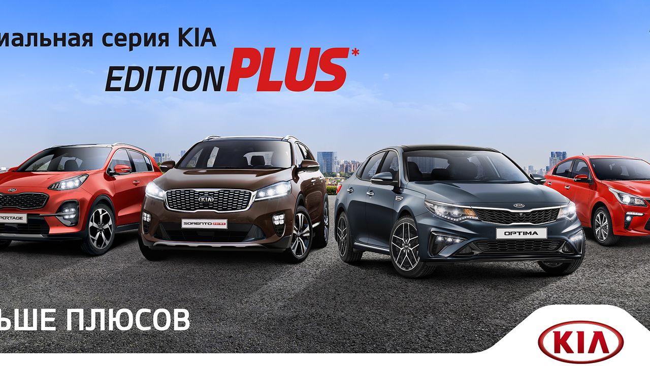 Южнокорейская компания Kia начала продажи в России новой специальной серии автомобилей – Edition Plus. Эксклюзивное сочетание дизайна, опций комфорта и безопасности получили четыре модели Kia: Rio/Rio X-Line, Optima, Sportage и Sorento Prime.