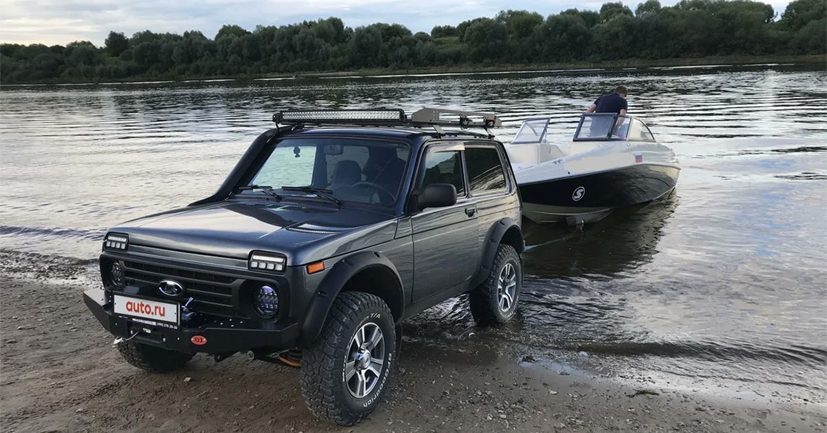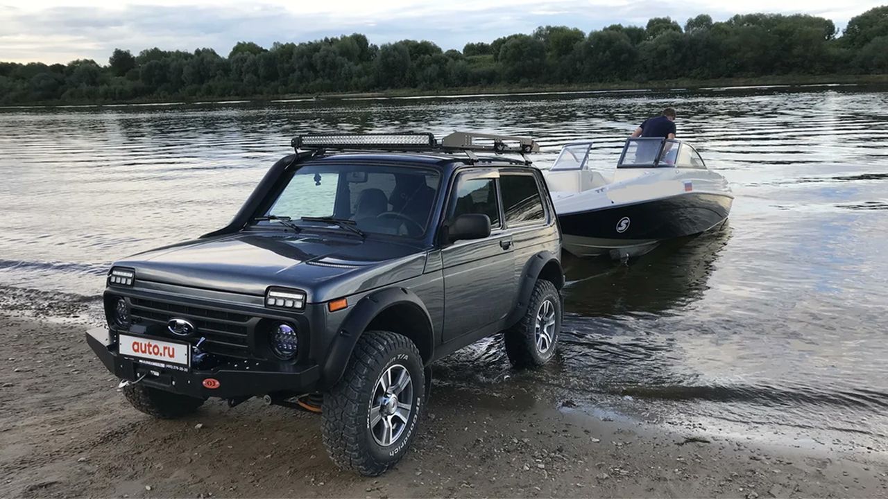 Для того, чтобы такой «Нивы» хватало не только на бездорожье, но и на буксировку прицепа с тяжелым катером, нынешний владелец оснастил её родной 83-сильный двигатель турбиной Garrett, увеличив отдачу до 130 лошадиных сил.