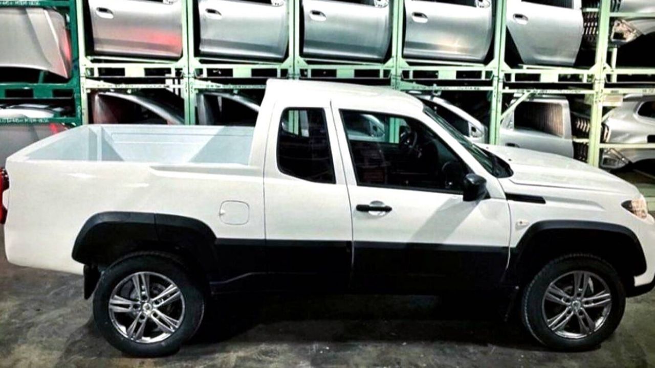 Представленный пикап является лишь ходовым образцом. Он получил полуторную кабину, безрамную конструкцию, пружинную заднюю подвеску и грузоподъемность, достигающую 500 кг.
