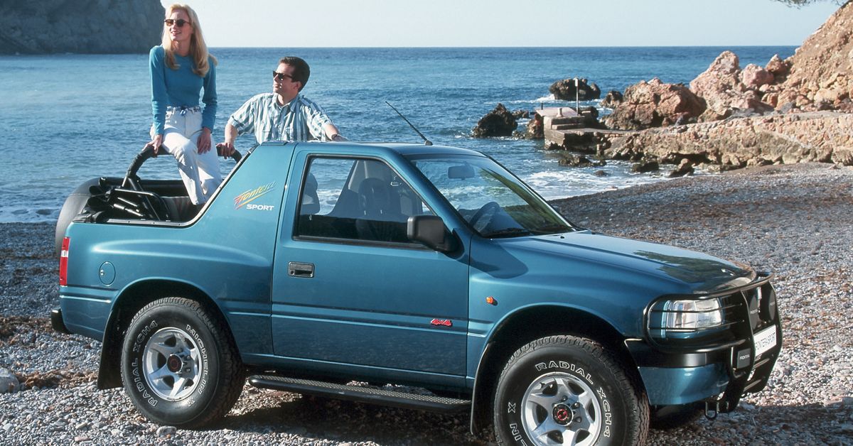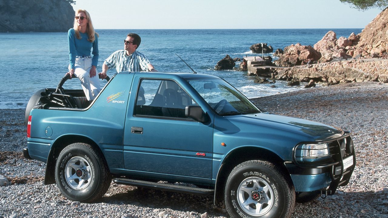 Этот немецкий внедорожник является «родным братом» аналогичной модели от марки Isuzu, однако в наших краях именно «Фронтера» более распространена, поэтому речь пойдет именно о ней. Автомобиль выпускался с разными типами кузовов, в том числе и с открытым верхом. В отличие от ранее упомянутых моделей, здесь применена схема со съемным жестким верхом, который открывал заднюю часть кузова. В качестве дуги безопасности выступает интегрированный усилитель.